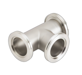 We fabricate these KF (QF) nipples (spools) for HV systems from tubing and KF flanges. The KF (QF) flange is used for through- or foreline vacuum plumbing and for simple HV chamber ports.