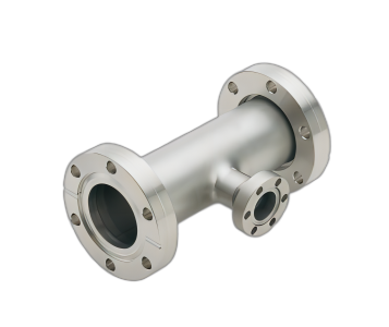 We fabricate these CF tees for UHV systems from 304L stainless steel tubing and knife-edge flanges. The CF flange is the most widely used for high vacuum and UHV applications. Many gauges, instruments, accessories and feedthroughs are available on this flange system.
